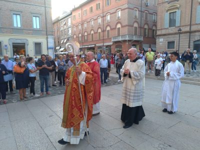 Una seconda attenzione è quella per i giovani. La parola giovane deriva dalla parola latina di ‘iuvare’ che significa aiutare. I giovani sono coloro che possono aiutare la società, il mondo, la Chiesa, il bene. I giovani hanno forza, entusiasmo, intelligenza, speranza per il lavoro futuro, creatività. Voler bene ai giovani vuol dire, per chi è adulto, camminare con i giovani, lasciare loro spazio, dare responsabilità ed offrire loro la possibilità di essere utili per servire il mondo. I giovani possono essere educatori dei propri fratelli e sorelle più piccoli, possono aiutare i ragazzi a studiare insieme, possono tenere compagnia agli anziani (nelle residenze talvolta basta poco, un canto e una chitarra, un po’ di vicinanza e amicizia, di prossimità), possono organizzare feste, viaggi, avventure, con i propri coetanei, possono animare le liturgie, cantando e suonando, imboccare i malati, spingere la carrozzella di un disabile, raccogliere cibo e servire nelle mense per chi vive per strada, creare attività lavorative, progettare tornei e feste musicali, cucinare cene, allestire un campo o un centro estivo o invernale, impegnarsi nell’associazionismo, nella società, nella politica, sostenere i paesi e i popoli poveri, trascorrere una giornata con amici che si sono isolati, spalare fango e salvare persone, non solo dall’alluvione ma da inondazione di fanghi di malessere e solitudine… i giovani, ne sono certo, possono fare 1000 cose, piccole e grandi, possono accendere tante luci e illuminare il mondo. Gesù si fidò molto dei giovani. Ad un giovane, l’apostolo Giovanni, affidò sua mamma, la Madonna. Alla Madonna, immagine della Chiesa, affidò Giovanni, un giovane. Vergine Maria, Regina di Bonora e Madonna delle Grazie e san Gaudenzo, proteggete la nostra Città, la nostra Diocesi, le nostre famiglie.