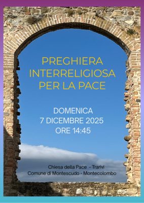 Domenica 7 dicembre 2025, alla chiesa della pace di Trarivi (Comune di Montescudo-Montecolombo), dalle ore 14.45 è in programma un momento spirituale dove diverse tradizioni religiose pregheranno insieme con lo stesso obiettivo: il raggiungimento della pace, la sicurezza e protezione di tutti.