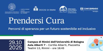 L’Alma Mater Studiorum Università di Bologna – Campus di Rimini, la Diocesi di Rimini, e la Confcooperative Romagna promuove il mercoledì 29 ottobre un Convegno dal titolo: “Prendersi cura. Percorsi di speranza per un futuro sostenibile e inclusivo”, alle ore 16,45 presso l’Aula Alberti 7 del Campus di Rimini (piazzetta Teatini).
