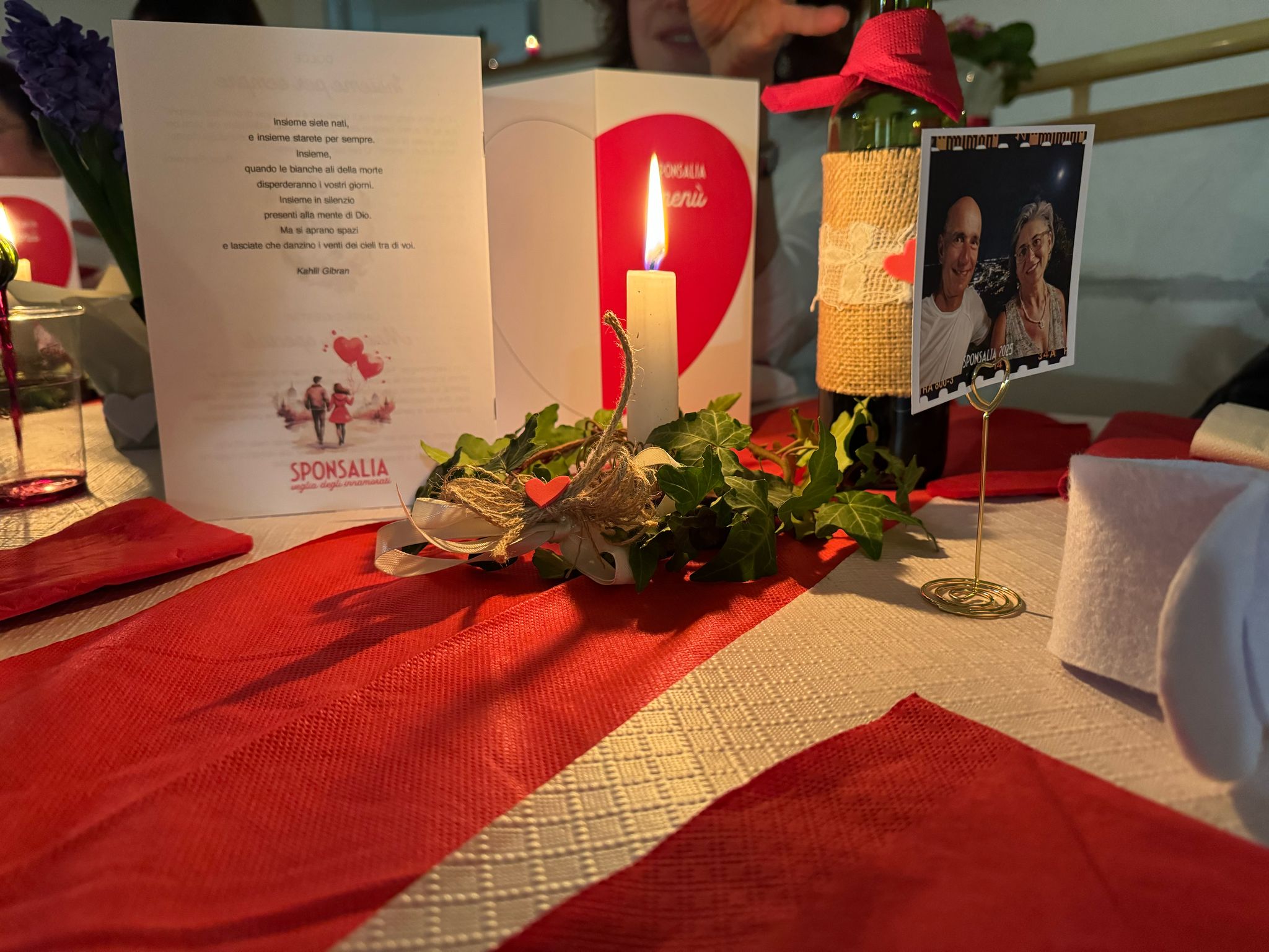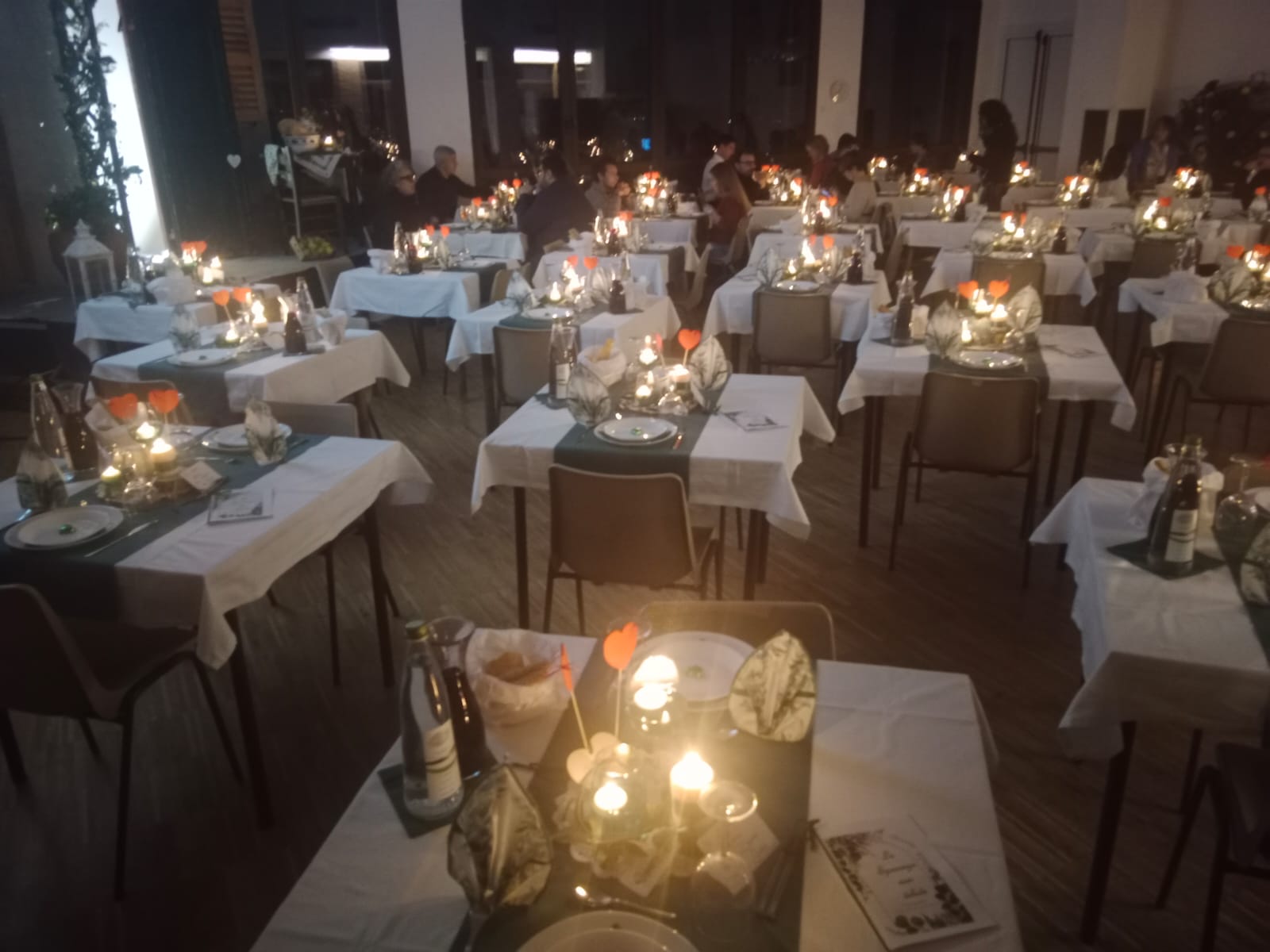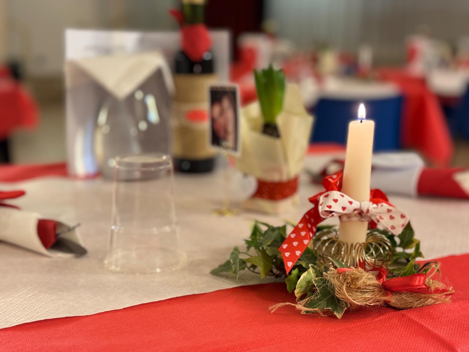 Le trenta coppie presenti sono state accompagnate nel teatro parrocchiale intitolato a Giovanni Paolo II, il santo papa che ha testimoniato una sensibilità meravigliosa per la coppia uomo-donna a partire dalla loro corporeità. Il teatro era allestito come una sala da pranzo curata e con tanti particolari: la candela, il menù a forma di cuore rosso (amore e passione), il porta tovaglioli a forma di cuore realizzati a mano, l’acqua e il vino. I tavoli preparati per la coppia erano separati per garantire l’intimità della donna e dell’uomo, ma non troppo distanti dagli altri tavoli per testimoniare la comunione con le altre coppie. “Ci ha dato l’idea della metafora del corpo umano, formato da cellule, diverse e unite per lo stesso fine. – proseguono il racconto Silvia e Gabriele – E il cibo preparato con grazia e competenza per un prodotto finale.